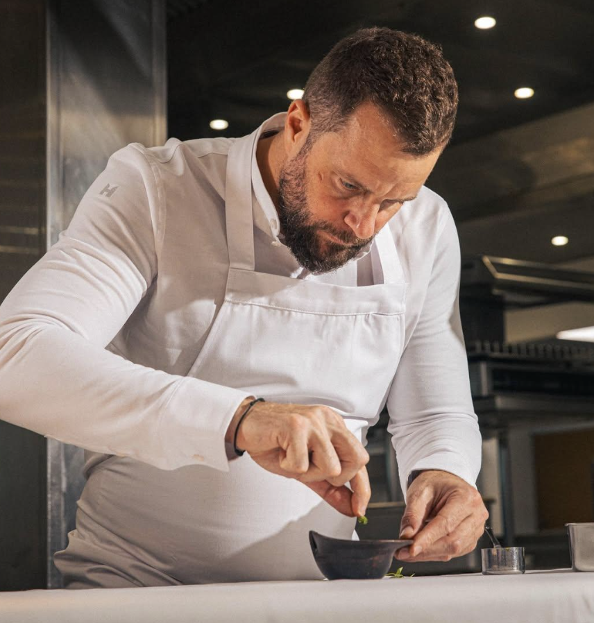Arrivé il y a deux mois, à la suite de la grande Hélène Darroze, pour prendre les rênes de la table gastronomique Louison (surnom de Louise Bourgeois), Florent Pietravalle – étoilé au restaurant d’Avignon La Mirande – a pris le temps d’arpenter ce territoire singulier et de s’en imprégner. Sa première carte s’en ressent : une cuisine de saison, à la fois brute et conceptuelle, attentive au végétal et au vivant, pensée comme une prolongation naturelle du domaine et de son intention. Heureux qui comme Ulysse… a fait un long voyage. Le chef n’est pourtant pas parti bien loin, mais sa cuisine a déjà pris une nouvelle dimension, comme si, ici, elle trouvait enfin le cadre naturel qui lui manquait en ville pour donner sa pleine mesure.